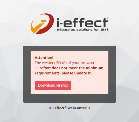 Before the login page is displayed, WebControl checks if the browser version meets the given system requirements. If the system requirement is not fulfilled, a corresponding error message is displayed instead of the login page.