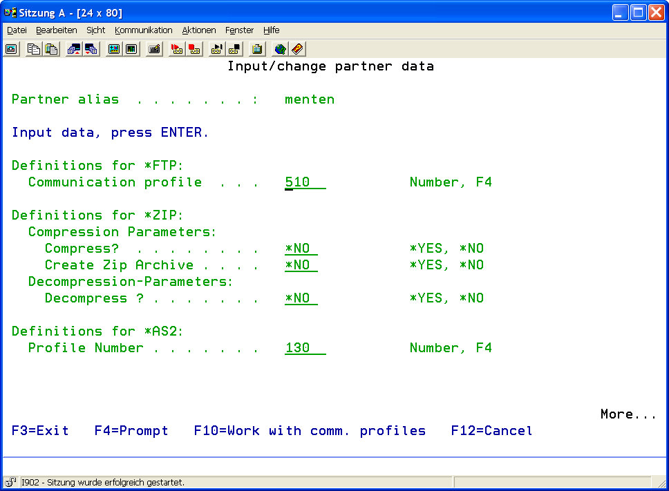 | Communication Profile | In order to assign data to an i-effect profile (and therefore to an FTP partner to connect with), enter the number of the i-effect profile describing the remote FTP server. Use function key F4 to display a list of profiles defined in the system. |