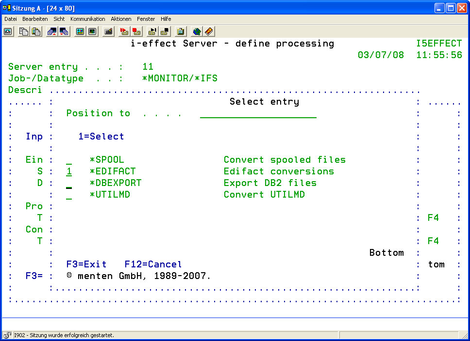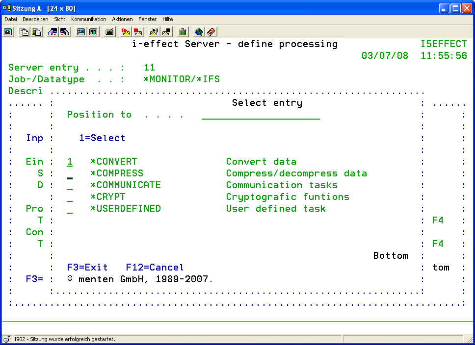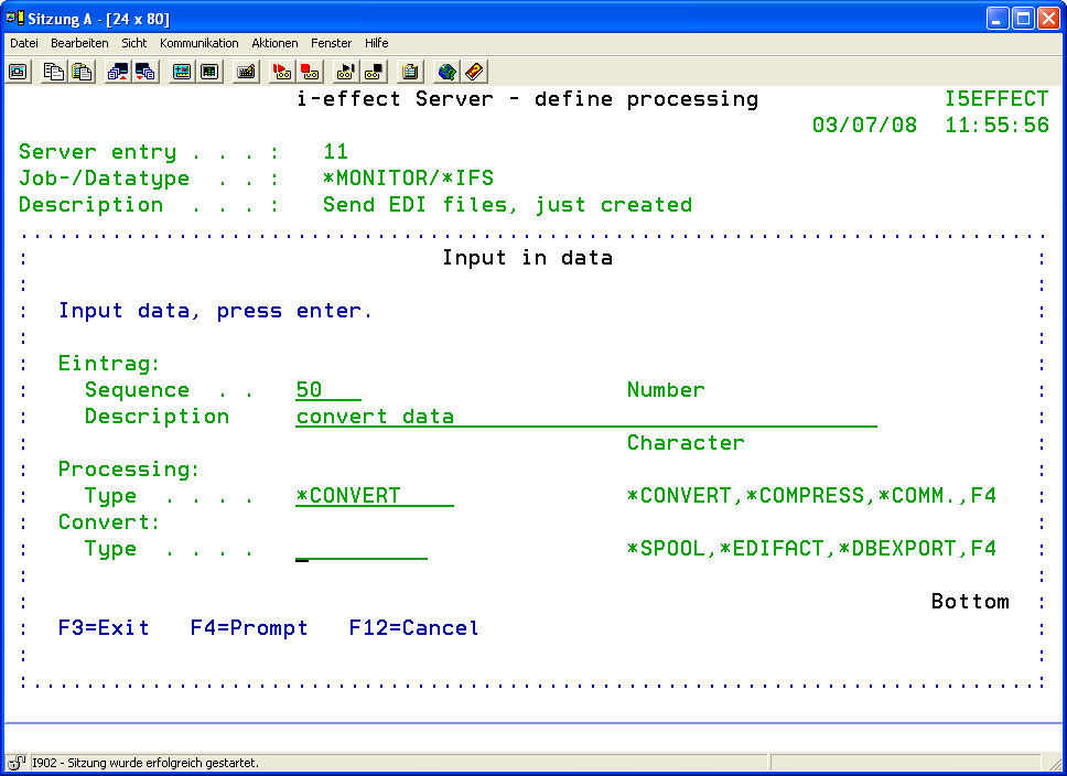 Choose *CONVERT from the display "Add Server Entries to the Processing Table".