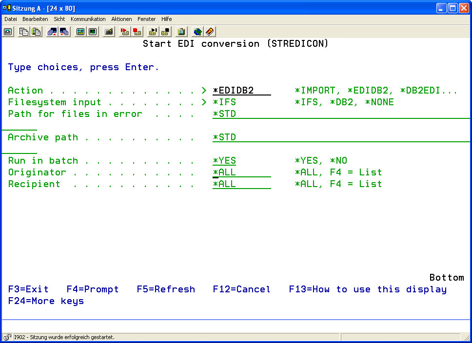 Define the type of conversion. (Use the function key F4 to display a list of the different types of conversion)