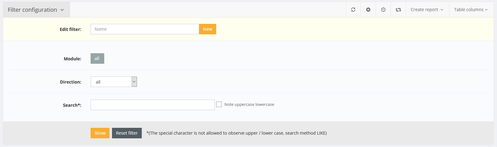 In the filter settings, you can filter according to the communication direction and the corresponding module next to the search field.
