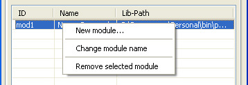 By clicking the right mouse button in the module table, it is possible to add modules, erase single modules, or edit the module name of an existing module.