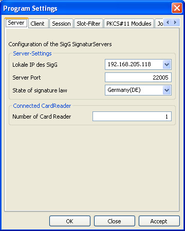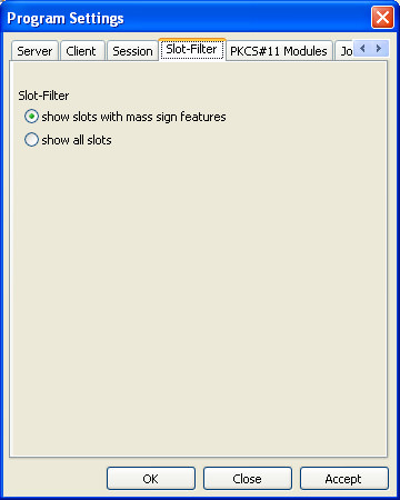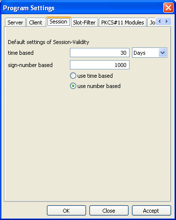 The settings in this tab influence the standard validity of signing sessions for all slots of SmartCards. It is possible to adjust the signing session settings for the individual slots if more card readers are used.