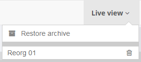 the current logbook is always shown with the entry live view, as soon as an archive is restored and selected, the name of this Reorg is displayed in the menu bar.