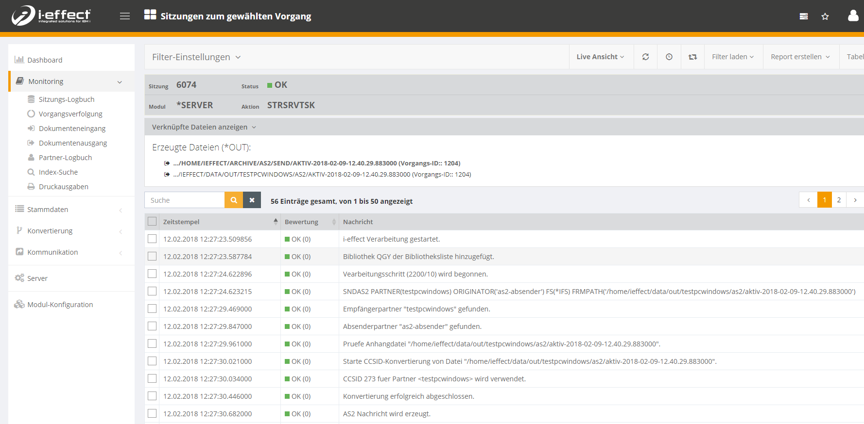 To simplify the monitoring of file outputs, the outbound documents section is used. In this section you can see all sent files of all communication modules.