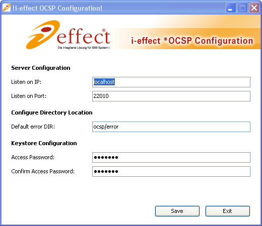 i-effect *OCSP is setup using a configuration dialog. To open the configuration dialog open the installation directory of i-effect - the integrated solution for IBM System i - and the sub directory OCSP.