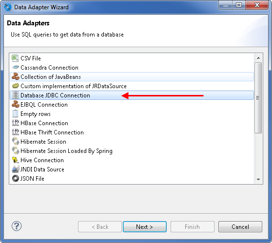 Choose "Database JDBC connection" and click on "next".