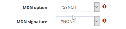 | MDN Option | Use this parameter to specify whether and how an MDN should be requested by your partner. Frequently, your partner tells you which setting is expected. AS2 offers the possibility to request acknowledgements of receipt for your sent AS2 messages. Acknowledgments of receipt, so-called MDNs (Message Disposition Notification) can be requested synchronously or asynchronously. Sychronous with AS2 means: The MDN you requested must be sent back using the same connection to your partner. If the transmission of a synchronously requested MDN does not take place via the connection you have established, the transmission process is terminated as unsuccessful, even if the transmission of the AS2 message has been successfully completed.This is necessary because the absence of the MDNs does not ensure that the AS2 message sent has been received and successfully processed by your partner.This may occur when sending large amounts of data with a synchronous MDN request, since the target system cannot process the data in the time defined as "receive timeout" in the AS2 send profile. The AS2 client then terminates the established connection before the MDN could be transferred from your partner to you. To prevent such situations when sending large amounts of data, you can also request an asynchronous MDN for these AS2 messages. However, you should first discuss with your partners whether their AS2 systems are able to send asynchronously requested MDNs. Please note that the MDN option *ASYNCH should be used when sending to the Telekom AS2 Gateway. Otherwise (with *SYNCH) you may not receive the feedback about possible errors in the conversion and delivery of the message into the X.400 box of the partner. |
