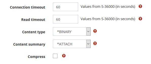 | Content summary | This parameter determines how the payload (user data) of the AS2 message is marked. The value should be left at the default *ATTACH setting. Your AS2 communication partner will inform you if the other label *INLINE is to be used. |