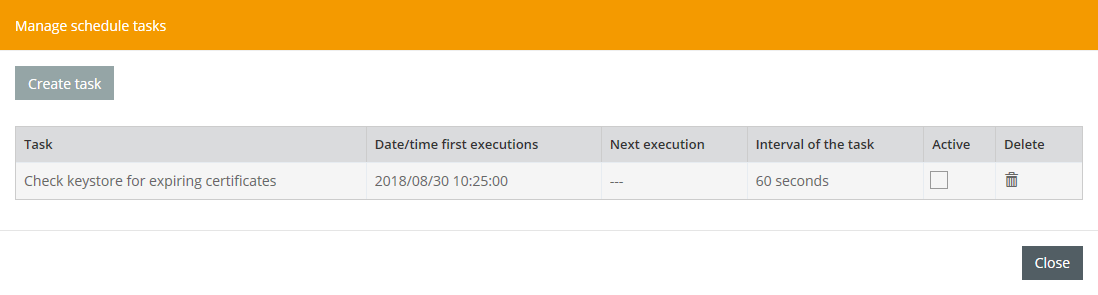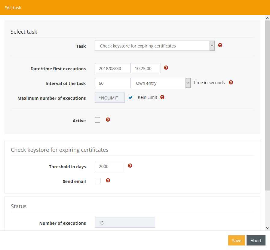 In addition, a threshold value in days can be configured for the keystore tasks, and whether the sending of an e-mail is desired.