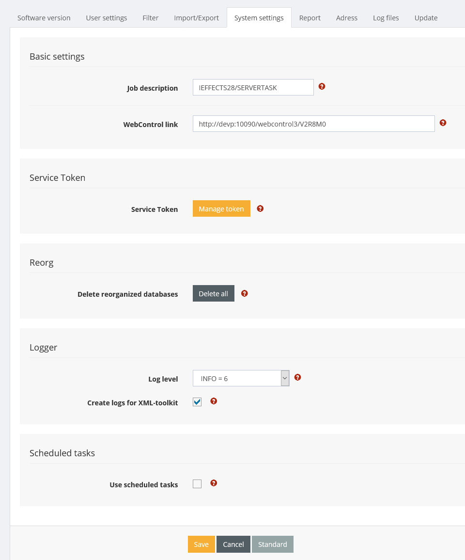Service Tokens are created and edited here. For more information, see the description of the Rest-Api