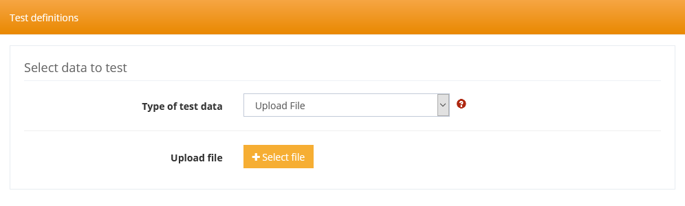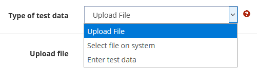 Test data can either be uploaded as a file, selected on the system, or copied and pasted into a text field.