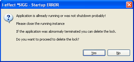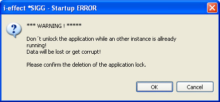 If this display appears, even though no second instance is running, the locking can be removed. It the case of a program crash, it might happen that the locking could not longer be removed.