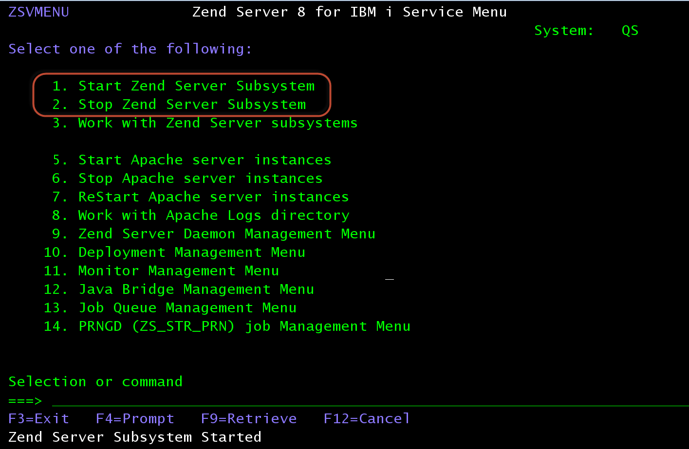 STRTCPSVR SERVER(*HTTP) HTTPSVR(ZENDPHP7)