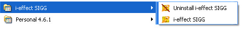 i-effect *SIGG can be uninstalled either from the Control Panel-> Software or from the Windows menu: