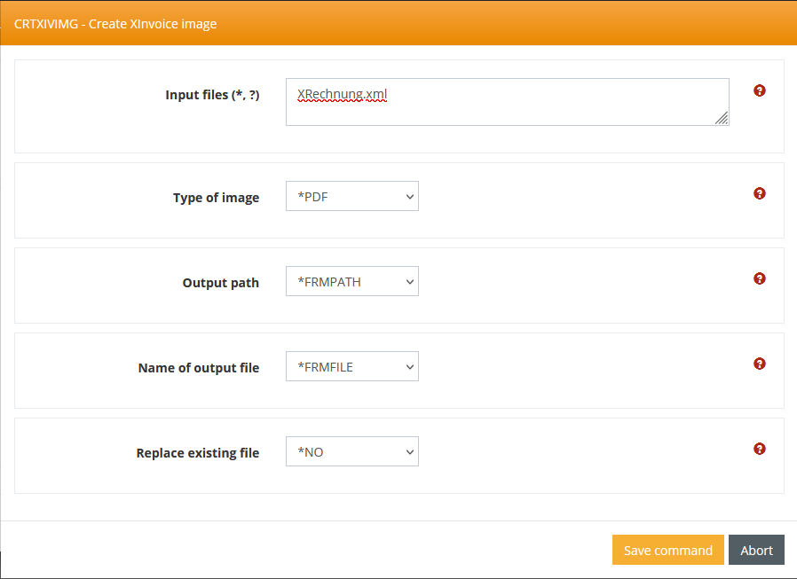 To visualize an XRechnung, execute the CRTXIVIMG command and select the desired parameters.