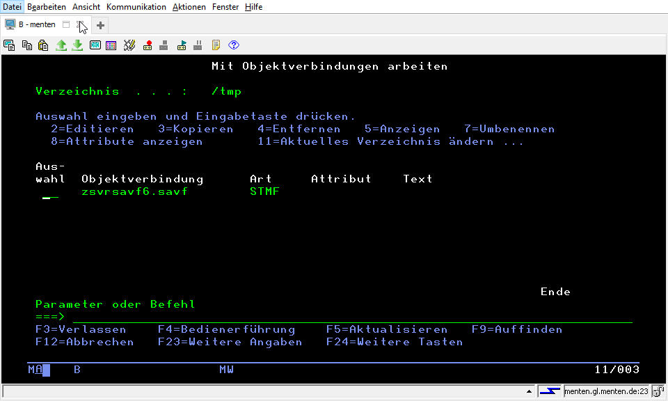 For installation, the backup file of the downloaded package (zsvrsavf6.savf) must be transferred to the IBM i. It can be stored in the temporary directory (/tmp), for example.