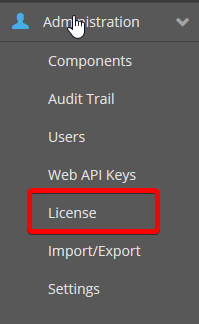 In the displayed administration interface, select the menu item for managing licenses.