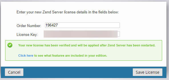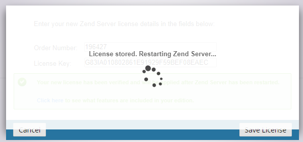 Click the Save License button to activate the license and restart ZendServer.