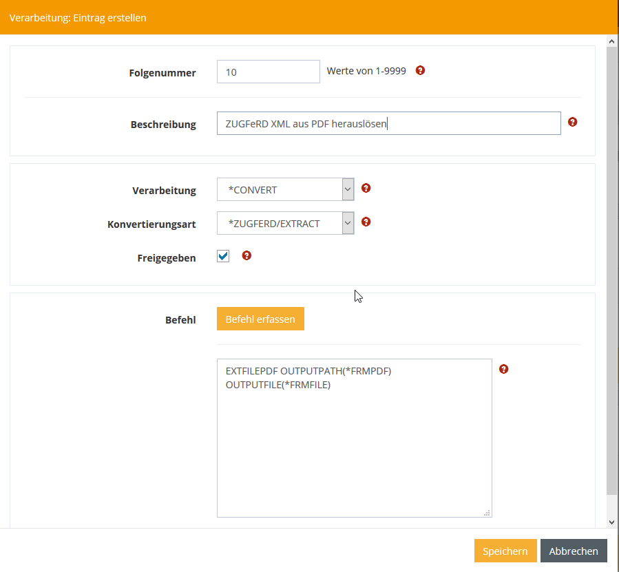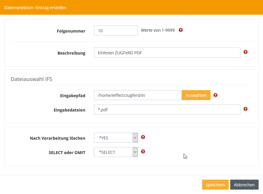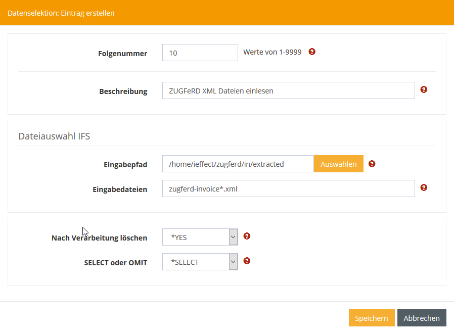 Wählen Sie nun als Eingabeverzeichnis das Verzeichnis, wo die extrahierten ZUGFeRD XML dateien abgelegt werden.