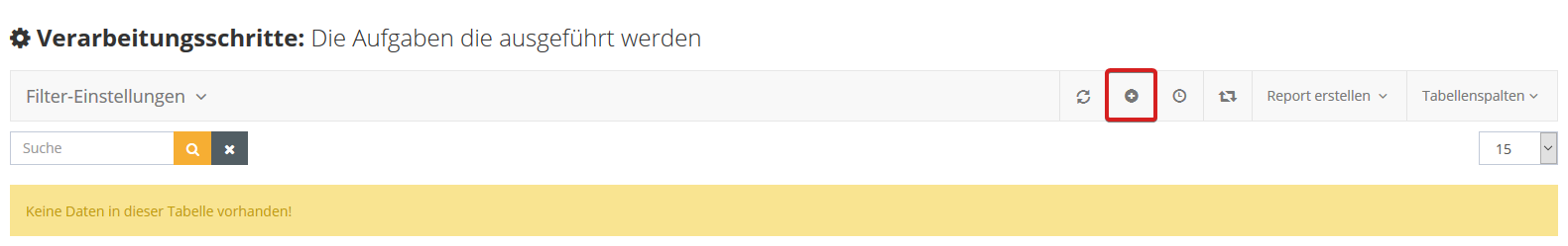 Drücken Sie nun unterhalb von Verarbeitungsschritte in der Zeile Filter-Einstellungen auf das Pluszeichen, um einen neuen Eintrag anzulegen.